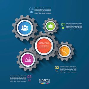 Vector infographic template with gears, cogwheels. Business and industrial concept with 4 options, parts, steps. Can be used for infographics, diagram, graph, presentation, report.